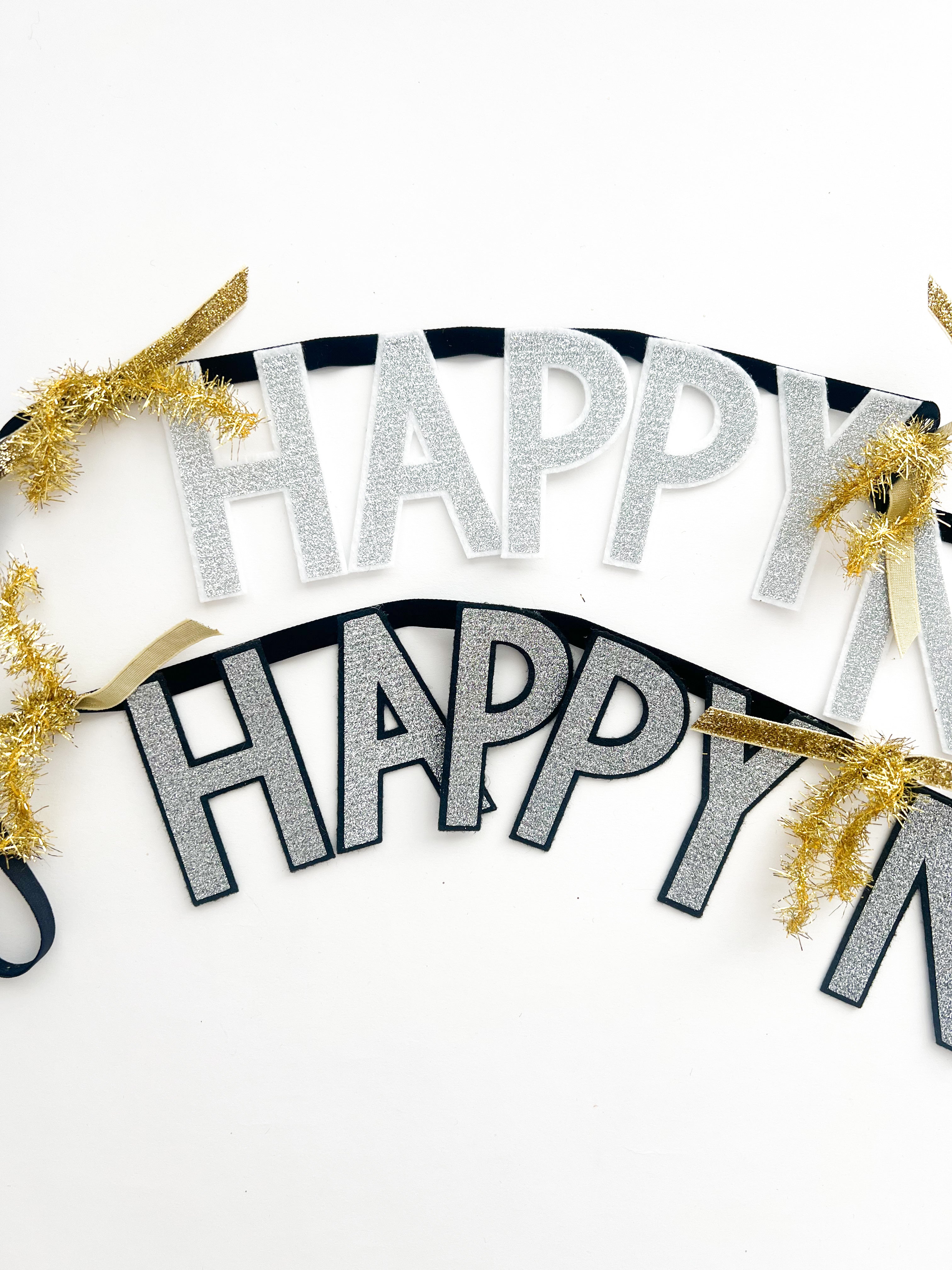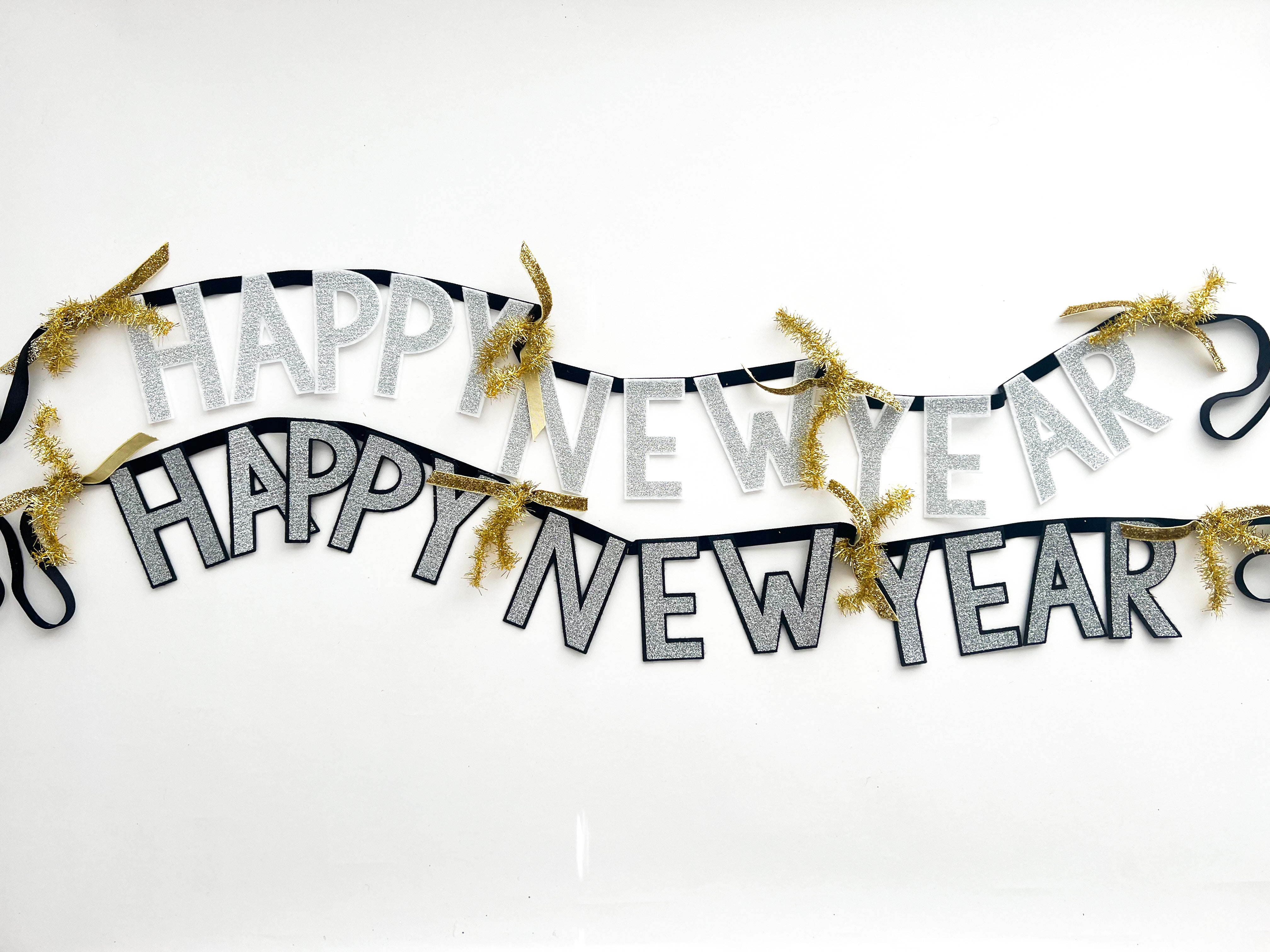 Happy New Year Felt Glitter Letter Garland on Velvet Ribbon - 2 Color Options